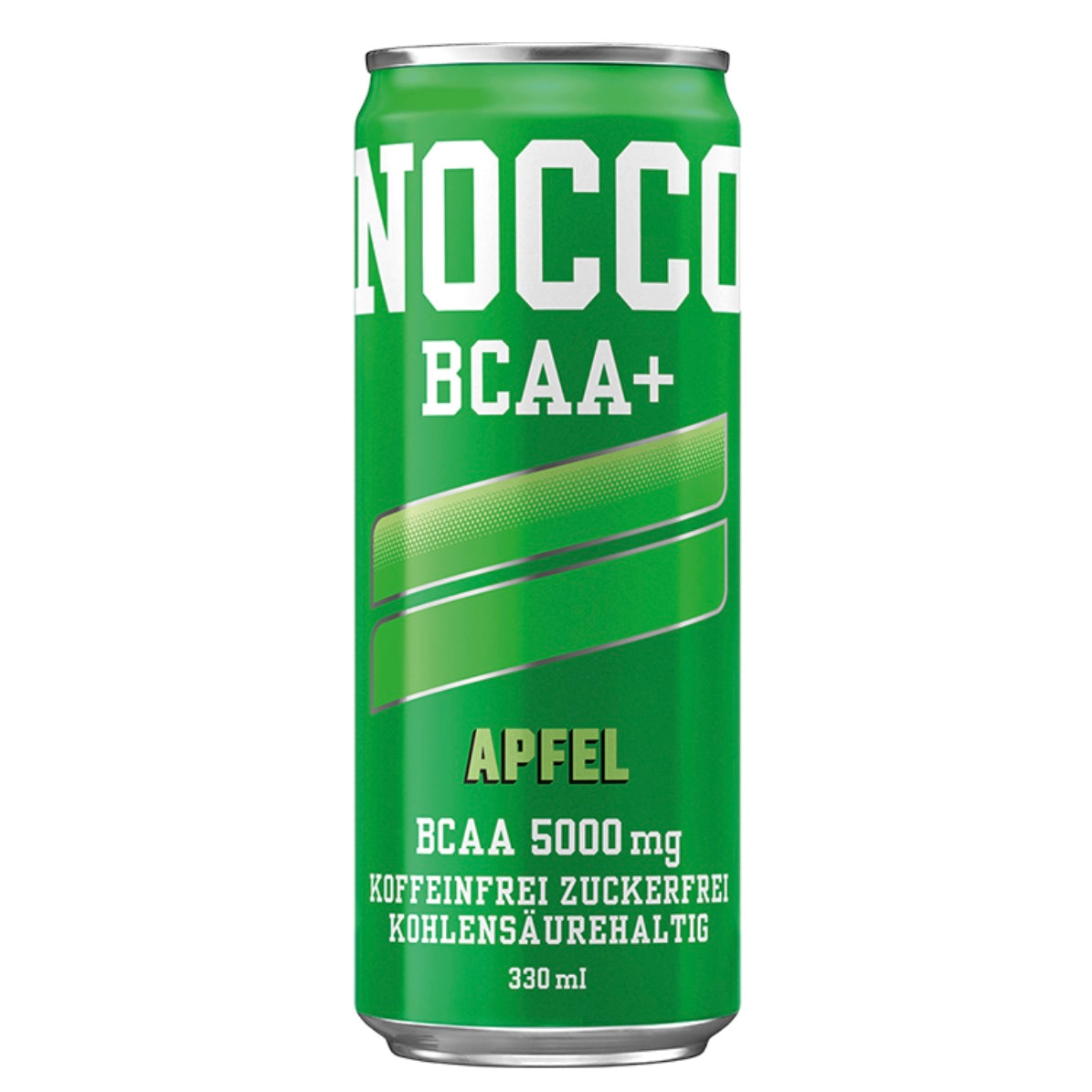 «NOCCO BCAA+» in der Geschmacksrichtung «Apple» enthält BCAA und verschiedene Vitamine. Es ist kohlensäurehaltig sowie koffein- und zuckerfrei (gesüsst mit Sucralose).