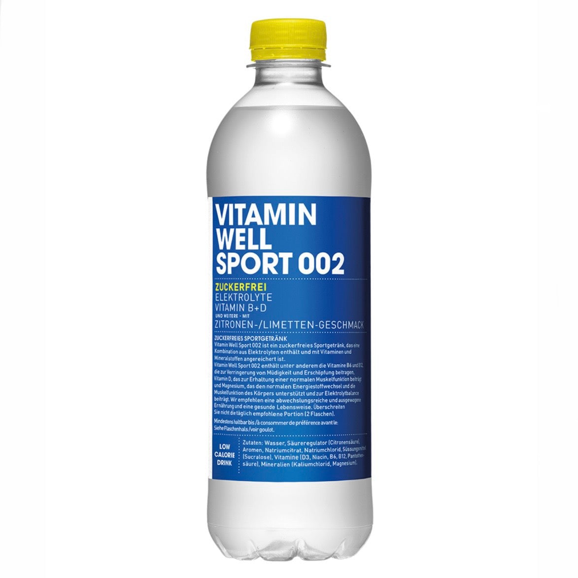 Vitamin Well Sport 002 ist ein zuckerfreies Sportgetränk, das eine Kombination aus Elektrolyten enthält und mit Vitaminen und Mineralstoffen angereichert ist.